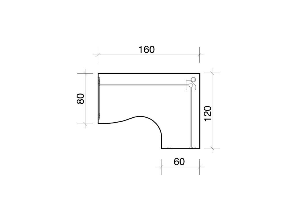 Rozměry [š × v × h (h1 × h2)]: 160 × 75.5 × 120 (80 × 60) cm
