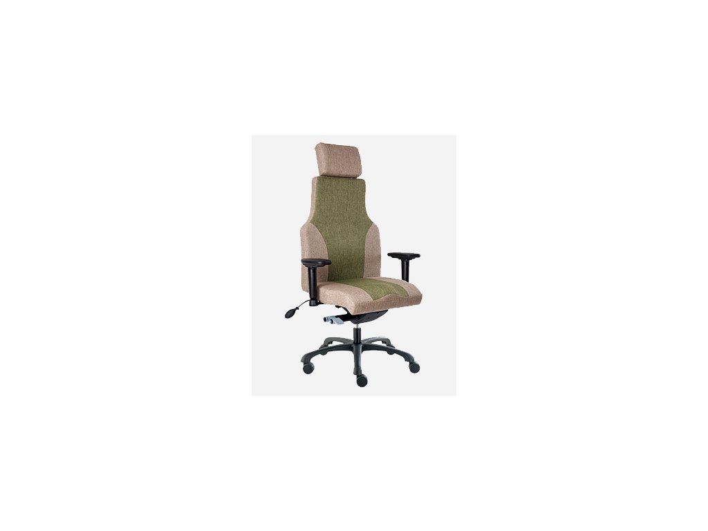 Kancelářské křeslo s ergonomicky tvarovaným sedákem vhodné pro 24-hodinový nepřetržitý provoz, opatřené synchronní mechanikou s posuvem sedáku, který lze nastavit i do negativních hodnot. Vybavené výškově nastavitelným opěrákem s bočním nastavením tuhosti mechaniky (odpor naklánění opěráku). Opěrák je opatřen vzduchovou bederní podpěrou. Podhlavník, výškově stavitelné područky. Nosnost 160kg.