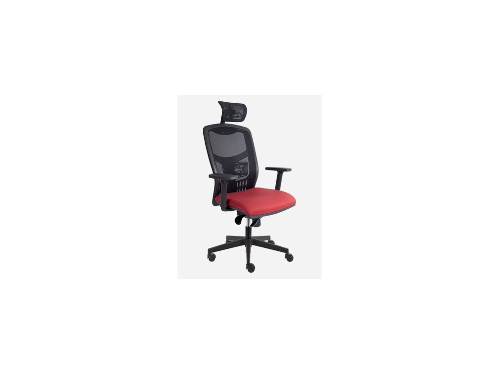 Moderní kancelářská židle s vysokým fixním síťovaným opěrákem vybaveným výškově stavitelnou bederní opěrkou a s bohatým čalouněním sedáku. Nastavitelný podhlavník. Výškově stavitelné područky. Nosnost 130kg.